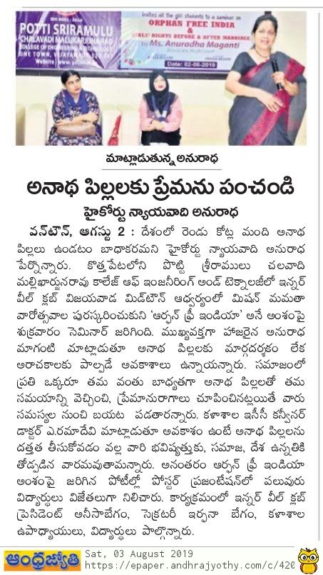 A Seminar on “ORPHAN FREE INDIA & GIRLS' RIGHTS BEFORE AND AFTER MARRIAGE”